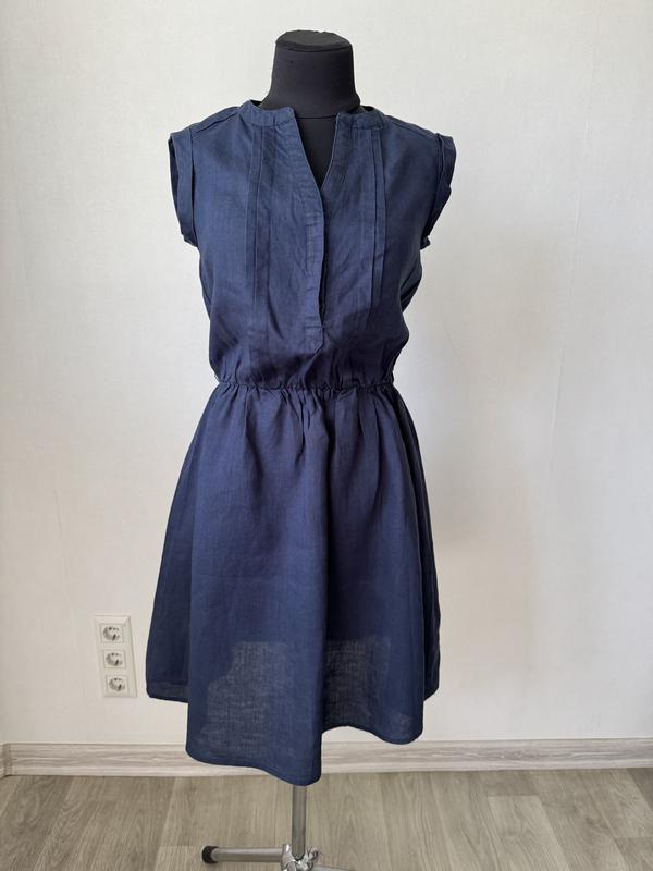 Сукня синього кольору У складі 55% льон, 45% рамі Довжина 94 см, напівобхват грудей 43 см, напівобхват стегон 67 см Стан ідеальний