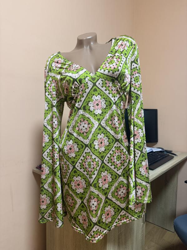 Стильна жіноча сукня, довгий рукав, довжина 85 см, в плечах 80 см, в грудях 90 см, талія 80 см, довжина рукава 70 см, тканина тягнеться