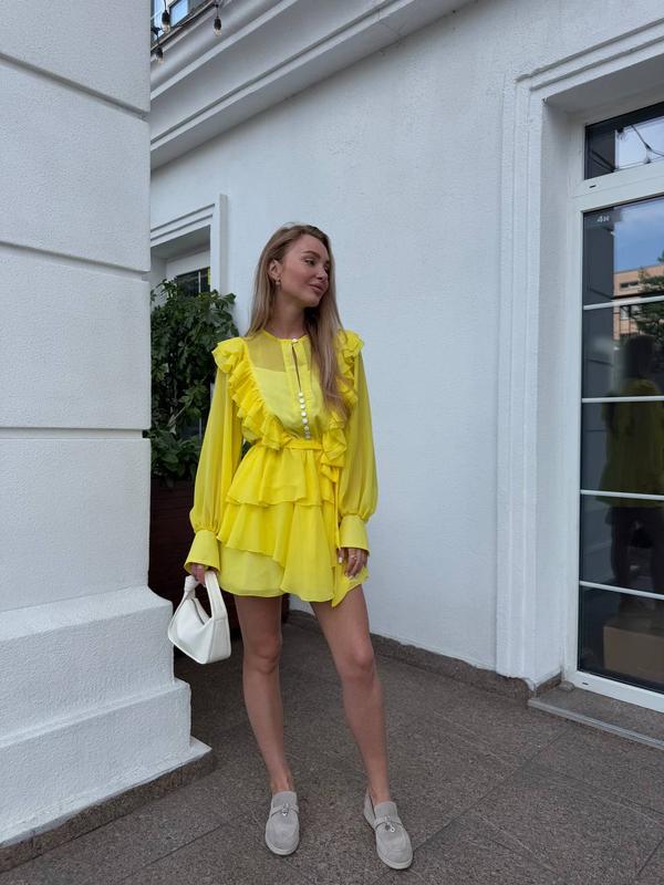 Сукня "Фея" ✅ткань - шифон высокого качества, хлопковый подклад ✅описание модели - платье состоит из нескольких слоев юбки с воланами, на декоративных пуговицах, с разрезом. Рукав длинный, с легким объемом, манжет на завязках. Пасок у комплекті ✅размер универсальный 42-46 Цена 2950 грн ❗️ Замеры платья "Фея" Размер универсальный 42-46 Длина платья по спинке - 80 см Длина рукава с манжетом - 62 см Манжет - 9 см Плече - 12 см Объем груди до 91 см Объем талии до 80 см Объём бёдер до 100 с