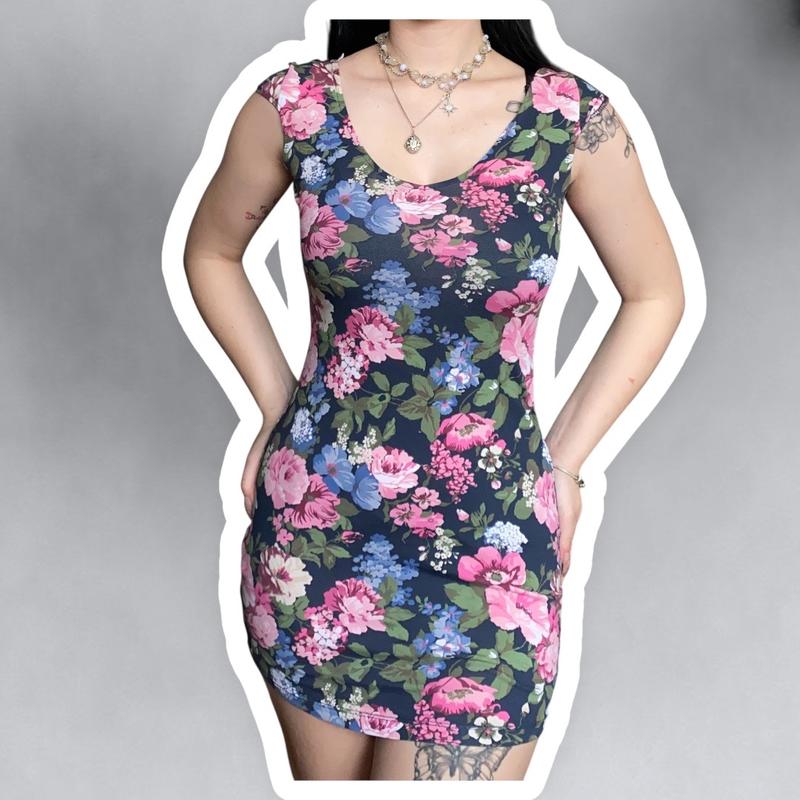 Синее платье в цветочек, размер хс-с, на невысокую девушку. Одето на 167. Стан 8/10 Переходите в инсталграм❤️