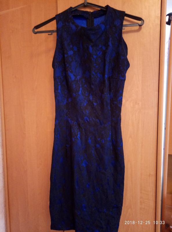 платье 42 размера.Верх платья черный гипюр,подклада из синего атласа. Застегивпется сзади на молнию