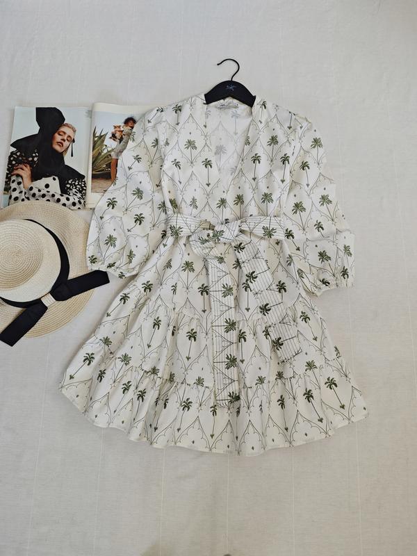🌿платье в принт от Zara с поясом, ткань хрустящий коттон Размер:S Замеры:ПОГ 47 см, длина 84 см, рукав от горловины 57 см