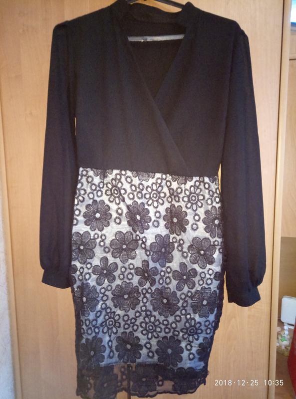 Оригинальное шифоновое платье черного цвета.Низ платья черная органза с вышитыии цветами,подклада белого цвета.Размер M.