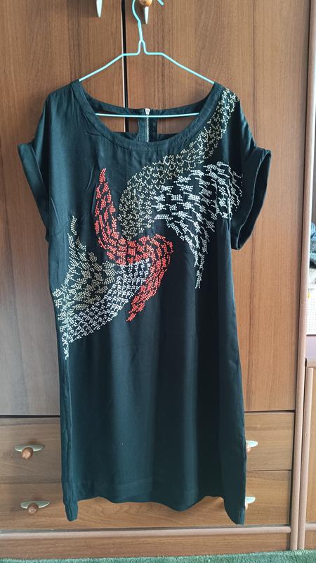 красивый мини-платье в идеальном состоянии. Цвет насыщенный черный, на фото загорает. На спине эффектный вырез. Очень приятный к телу. Подойдет на размер M-L
