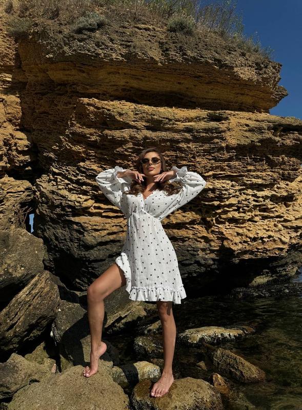 Жіноча муслінова сукня в сердечко з довгим рукавом