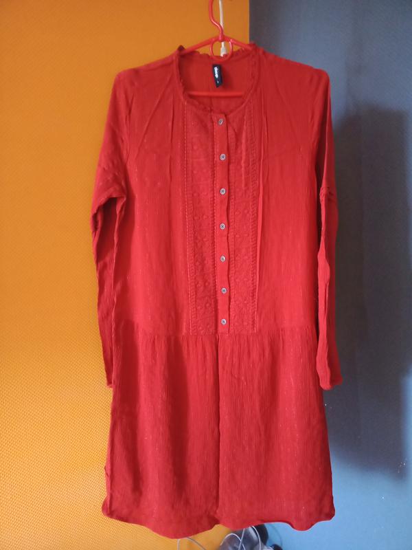 Летнее платье с длинными рукавами бордового цвета размер l