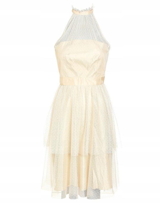 Святкова нарядна легка вечірня коктейльна сукня, розмір 40, колір Шампань, плаття сатин поверху фатин в крапочку, спідничка фатин двоярусна, брен nelly nly trend, знайшла в інтернеті таку сукню за 112 злотих.