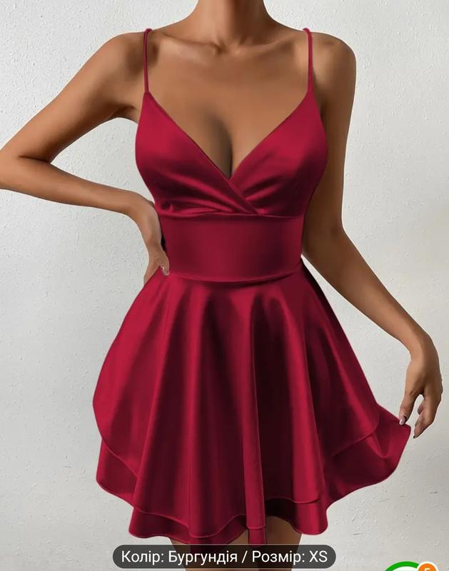 Красивое женское платье, ткань плотная, не просвечивает. Имеет яркий цвет. Спинка открытая, регулируется завязками.