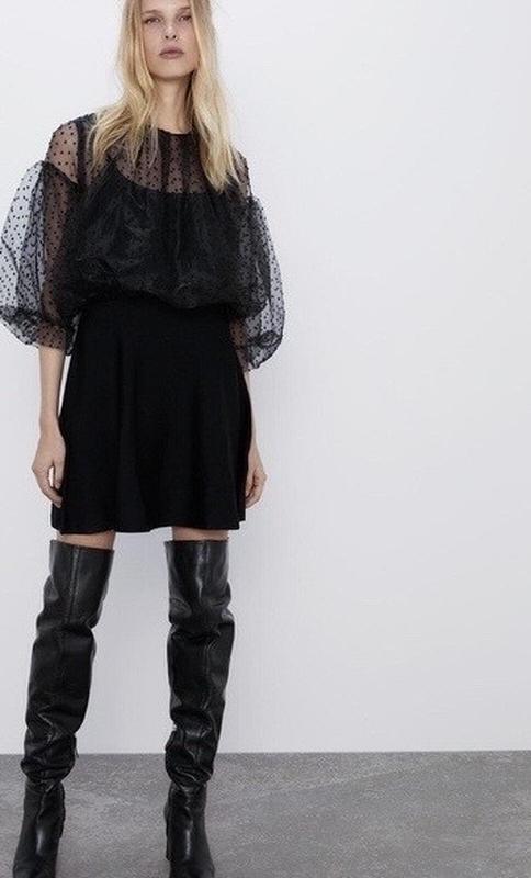 ✅S 42 Z@RA ПОГ- 72см,,ПОТ 32-40см,,ПОБ- 55-58см,,рукав-53см від шиї,,довжина - 55/105см,,верх шифон,,низ-54%віскоза+нейлон,,,стан -відмінний