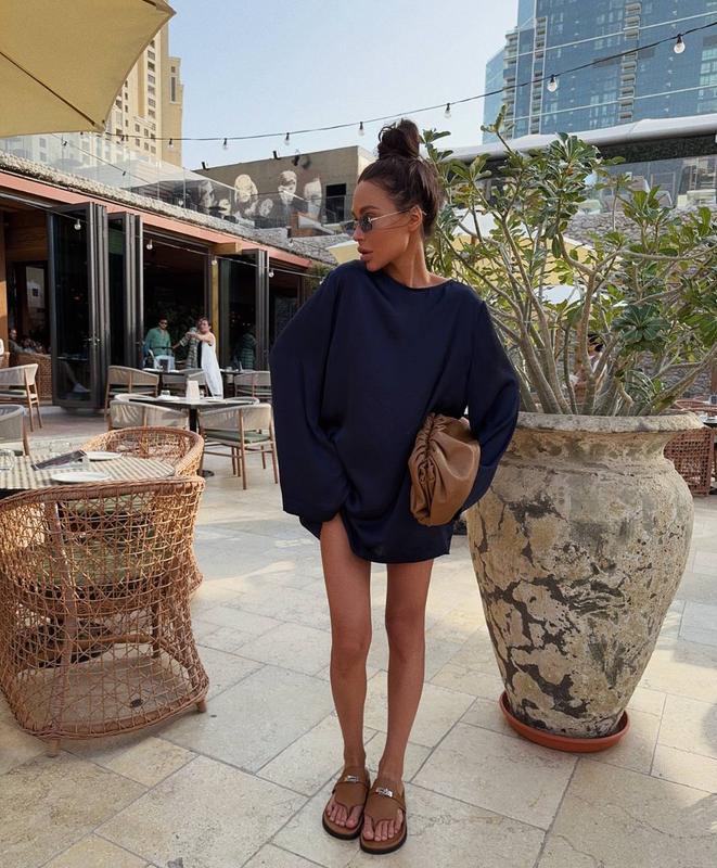 Жатый шелк платье мини широкий очень длинный прямой крой оверсайз