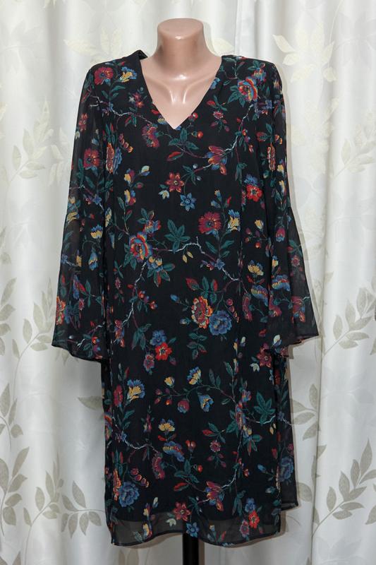 Цветы на черном фоне. Рукава - воланы три четверти. Фасон прямой. В груди вытачки Сверху - шифон, снизу - трикотажный чехол. полуобхват груди: 55см полу охват талия: 53см полуобхват бедра: до 55см плечи: 42см рукав: 62см (от плечевого шва) / 36см (с внутренней стороны) длина: 97см Оттенок может отличаться через индивидуальные настройки монитора Доставка: Нова Пошта, Укрпошта За счет покупателя. Без личных встреч Оплата: безопасная оплата, полная подписка на карту