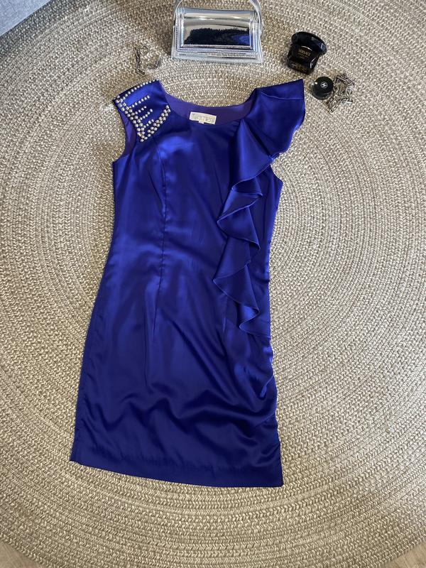 Шикарна синя сукня з декором на плечі. Тканина 75% Rayon (віскоза), 25% Elite. Сукня на підкладці Бренд вказала Zara, оскільки немає у списку