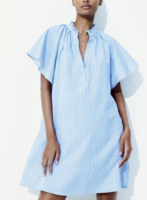 Коротка літня сукня в білу смугу , смугаста сукня