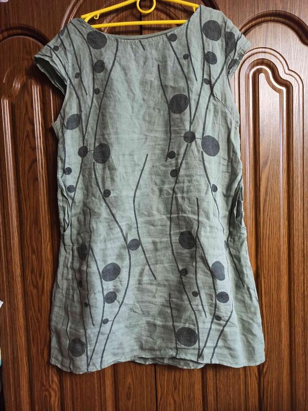Красивое и стильное льняное платье в отличном состоянии. Замер: ПОГ-55, ПОТ-52, ПОС-61, длина-91, есть карманы. Не тянется.