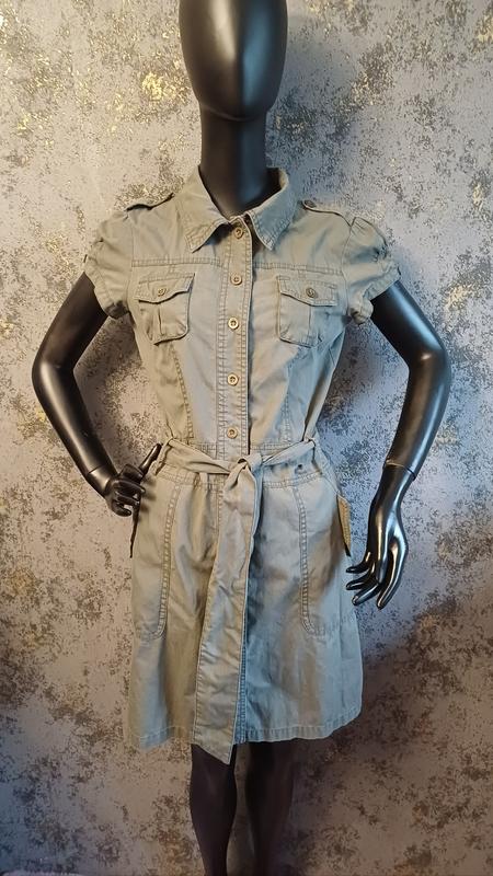 Платье в стиле сафари, по фигуре, имеет глубокие карманы, с пояском, можно носить без пояска. Плотный коттон, цвета хаки.