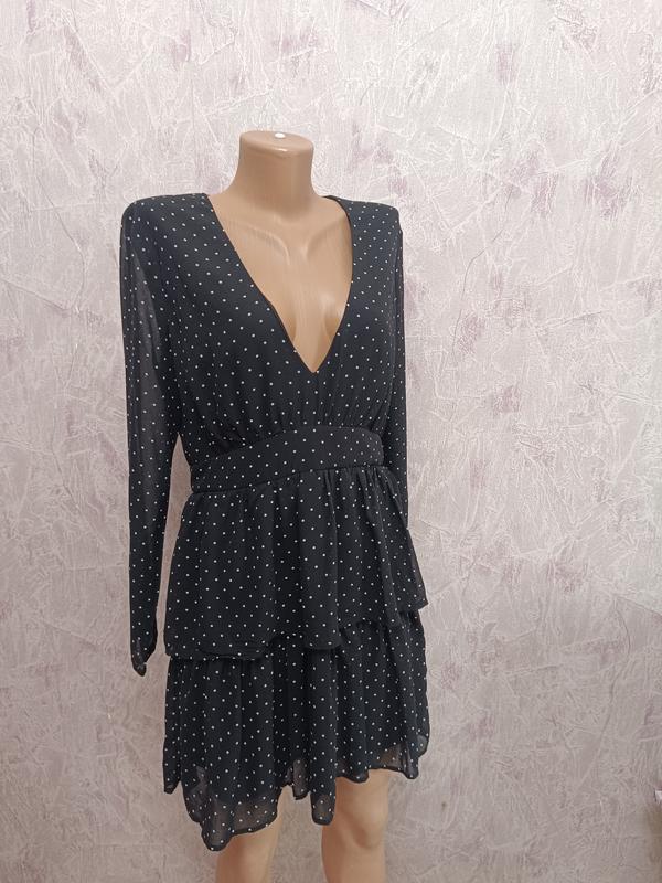 платье в горошек белое, размер М, очень красивое, глубокий вырез
