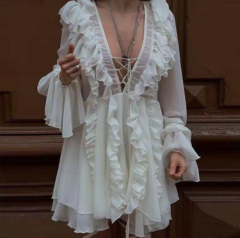 Ніжна сукня на шнурівці, яка підкорює с першої примірки😍 Мод:2616 Розмір: m, l, xl (маломірять) Колір: білий Тканина: шифон на підкладці На зріст до 165см Ціна 1250 грн