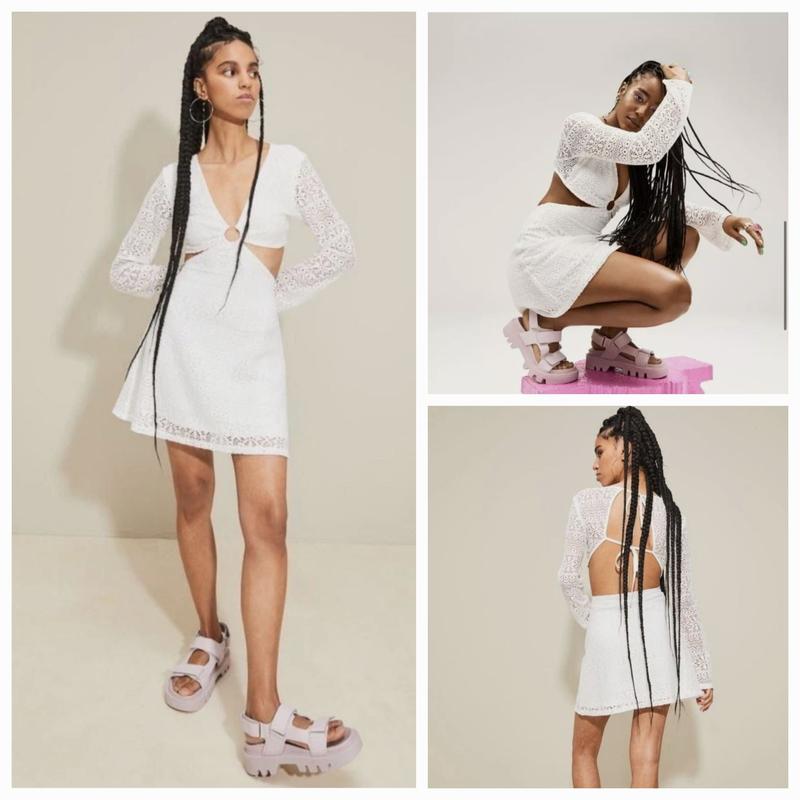Белое кружевное платье с длинными рукавами и вырезом h&m, размер м, 989 12