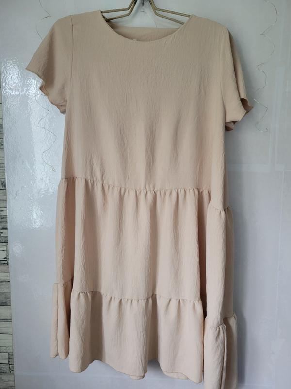 Вискозное, бежевое платье, сарафан, жатка, свободный крой.