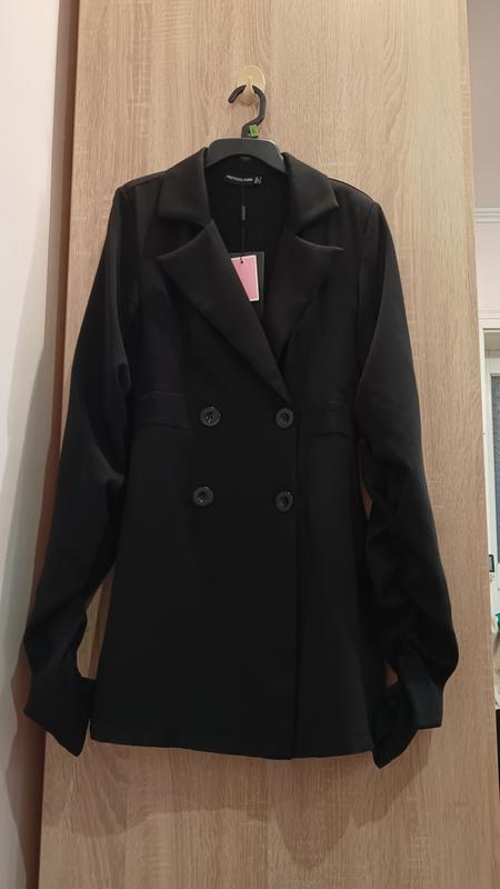 Нюанс видный на последнем фото-неровом сшитый пояс сзади, переноска. Это не очень заметно, а если брать еще под свой поясочек, тогда вообще не будет заметно Размер указанного евро 34 Внутренний шов рукава с драпировкой, то есть идет сборками, на фото видно Длина 82 Длина рукава от плеча 74, но будет короче за счет драпировки Плечи 39 Есть небольшой подплечник при необходимости можно срезать Полу окружность груди 41 Пол окружности талии 33 полность окружности бедер 46 ,