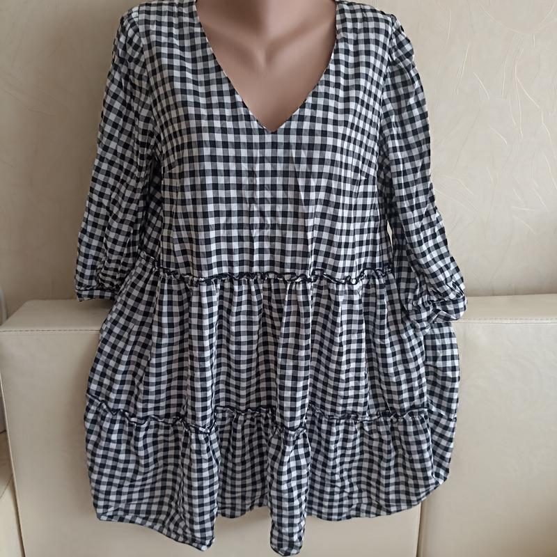 Женское летнее платье из вискозы и полиэстера. Размер 16: ПОГ53, ПОТ 55, длина 87, рукав 47, декольте 18, между плечами 36 см