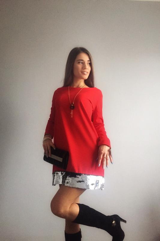Стильное платье с паетками. Свободного кроя.