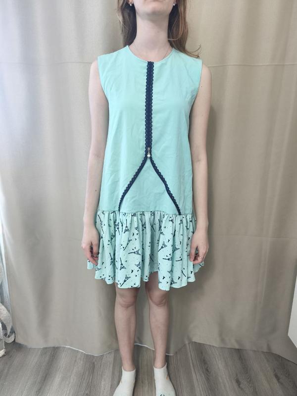 Красивое летнее платье, приятное на ощупь, красивый цвет. Размер S,M. Принт эльфелевая башня. Декор в виде замка