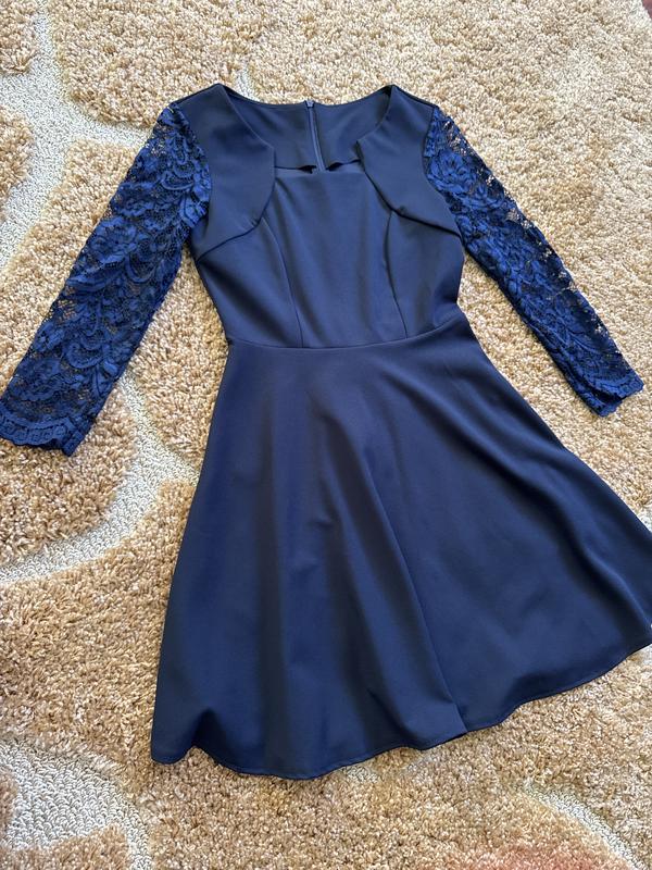 Жіноча сукня, колір: темно синій, розмір: м, тканина: віскоза, рукава гіпюр. Сукня йде на змійці. ОГ: 83 см, довжина: 85 см.