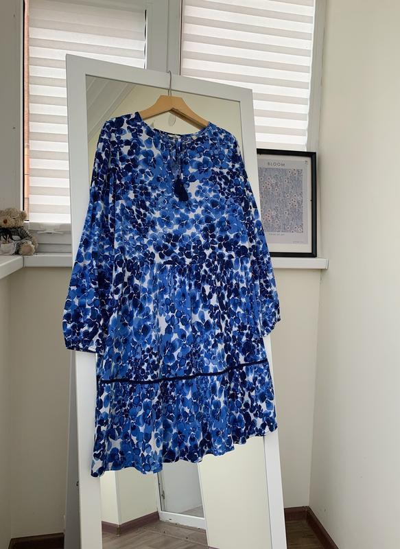 Платье в цветочный принт Размер М Длина 95 см Полуобхват груди 50 см Полуобхват талии 47 см Рукав 62,5 см Материал: бирка срезанная, на ощупь вискоза Состояние: идеальный