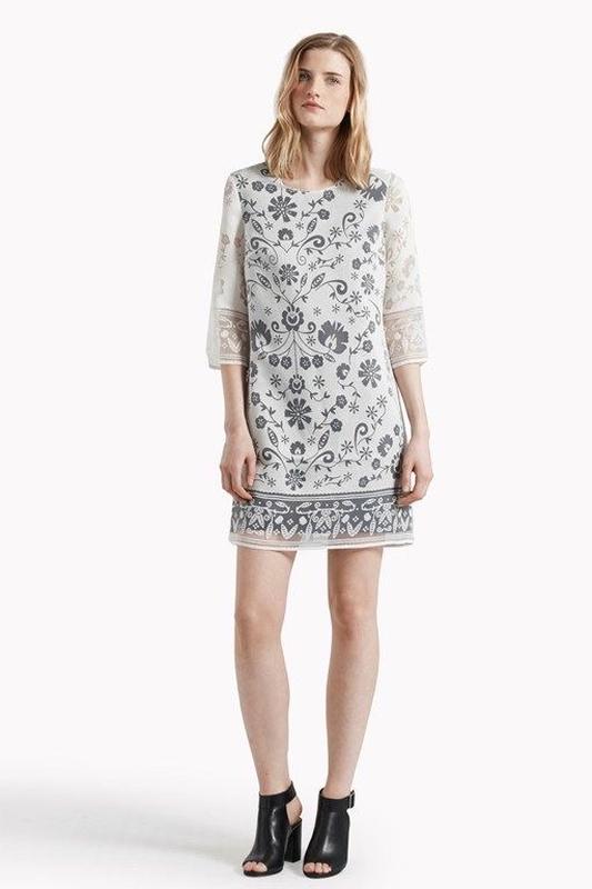 Дуже гарна нарядна сукня футляр Great Plains, верхній шар молочного кольору із напівпрозорого мережива в квітковий принт, є підклад, розмір С, стан ідеал