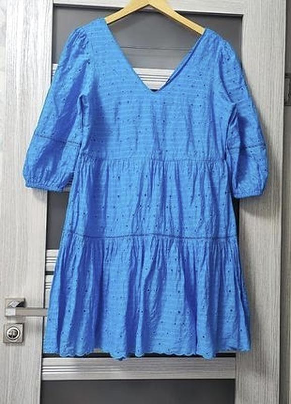 Платье ярусное из прошвы от бренда F & F 🌿 Размер 22 / наш 56 💥 100% коттон, очень легкая и приятная, идеальная для летней жары Состояние новой вещи. Замеры : Пог 64 см, Пот 60 см, Побс 75 см, длина 101 см, рукав 53 см, ширина внизу 122 см