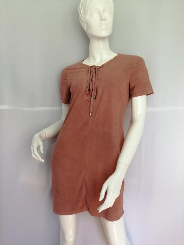 Платье под замш розово-пудрового цвета со шнуровкой. Размер XS-S. Замеры и дополнительные фото по запросу.