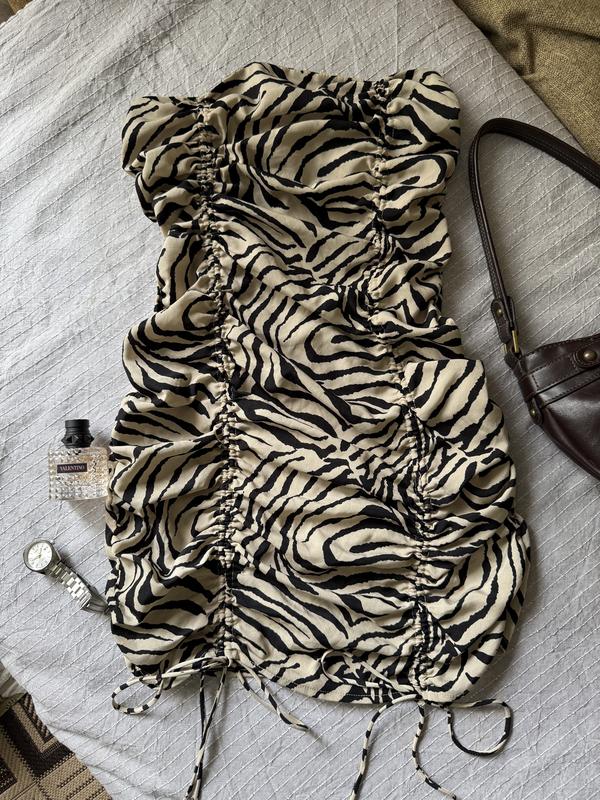 Шикарна сукні міні у актуальний принт Дуже гарно сідає по фігурі На розмір ххс-хс, не високий зріст Стан в цілому чудовий, нюанс останнє фото , при носії не буде помітно Пог 36-42 Довжина по боковому шву 61 Пот 30-33 Поб 43-46