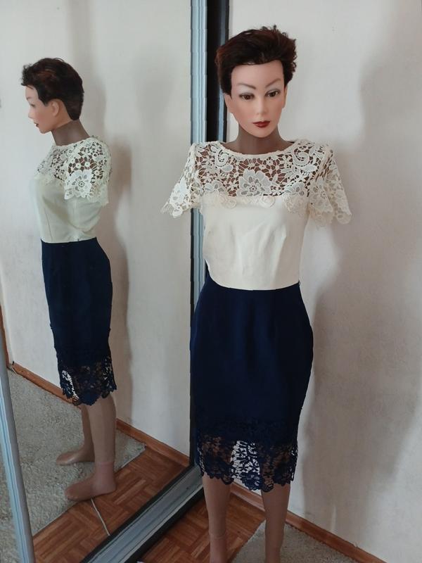 Платье женское, праздничное, украшенное кружевом. Пог 42 см,пот 32 см, попостегон 46 см, длина изделия: 104 см.