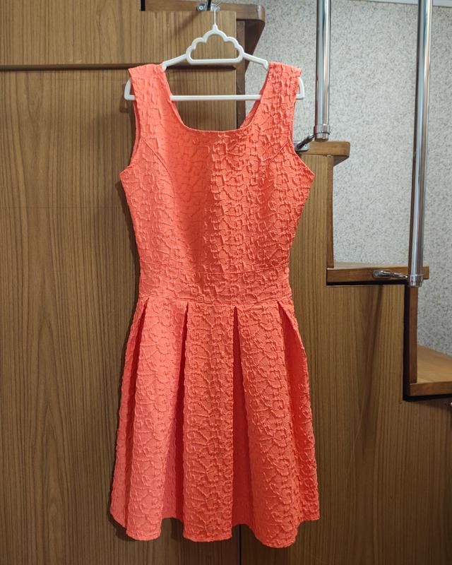 Яркое летнее платье. Сзади застегивается на молнию, цвет более коралловый. Материал жатка. Подойдет подлетку. Размер: XS-S Стан - идеальный