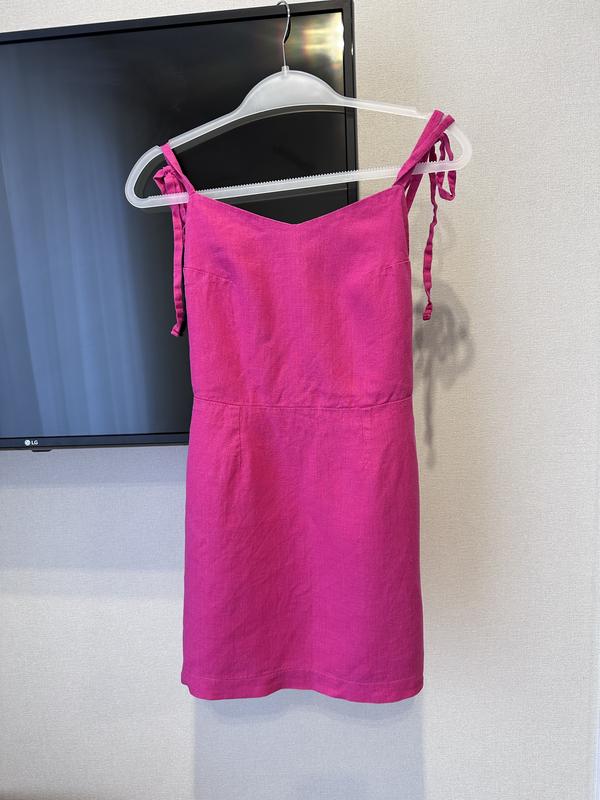 Яркое, насыщенно розовое/малиновое льняное летнее платье в идеальном состоянии, одевала несколько раз Размер S или маленькая М, длина регулируется (плечики на завязках) Есть подкладка из натуральной ткани Полу обхват талии 33см Стегна 46см Длина без учета бретель 70см