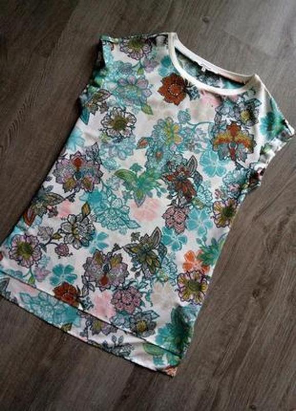платье-туника-футболка в цветочный принт от Next.Очень красивый принт и расцветка просто вау 😍.Очень освежает👍.Полукрыглый вырез .Рукавчики с подворотиками,приспущенные.По бокам небольшие разрезики.Ткань приятная.Смотрится эффектно.Размер указан 10.Замеры: Пог 50 см. Поб 52 см. Длина 76 см спереди,длина сзади 83-84 см. Без бумажной бирки. Обмена и возврата нет! Примерки нет! Пожалуйста, совершайте покупку обдуманно, уточняйте все детали перед покупкой. С готовностью отвечу на интересующие вопросы. Доставка: Отправка Новой почтой каждый день после обеда.(кроме воскресенья) ❗️100% оплата на карту, не забывайте пожалуйста учитывать комиссию банка.❗️ - Наложки НЕТ! - Обмена и возврата нет.Примерки нет