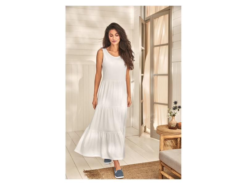ESMARA Жіноча сукня міді Опис Ресурсозберігаюча віскоза Особливо м'який та щільний Високоякісний матеріал піке Круглий виріз горловини Модні рюші на спідниці Матеріал Зовнішній матеріал: 72% віскоза, 28% поліамід Підкладка: 100% поліестер ✅ S 36/38eu ( наш ~ 42-44) ✅ М 40/42eu ( наш ~ 46-48) ✅ L 44/46eu ( наш ~ 50-52) 💰 400грн