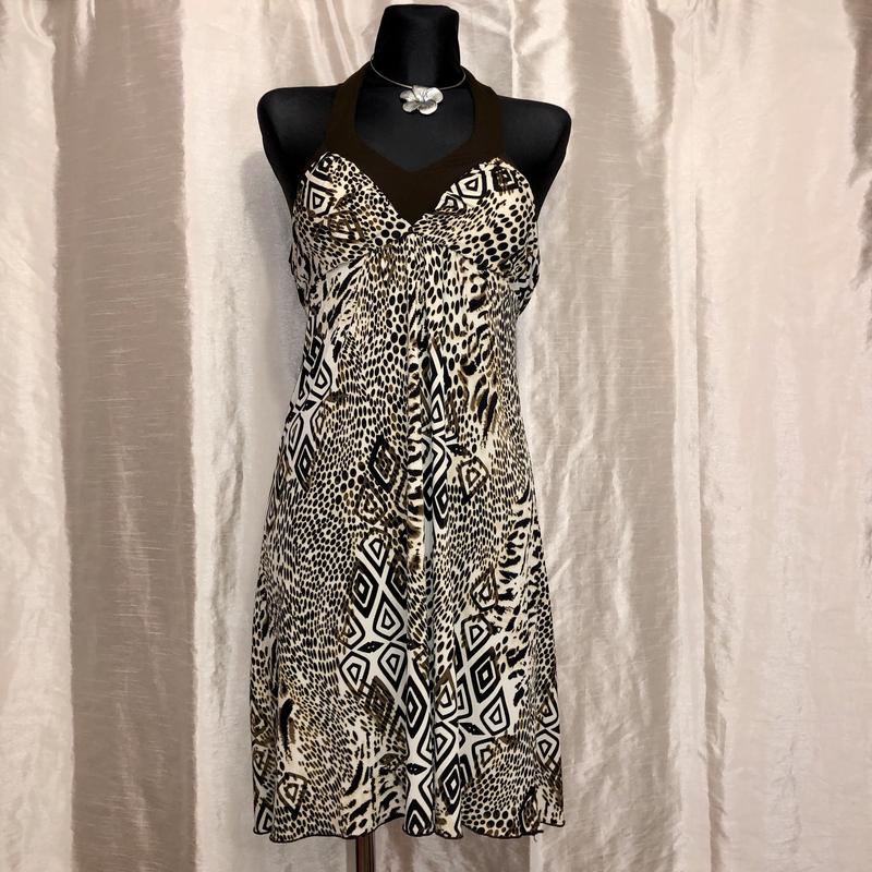 Винтажное платье с животным принтом vintage 2000s y2k с чашками и завязкой на шею