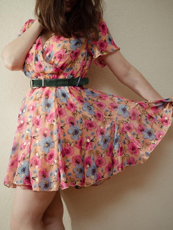 Нежное романтичное платье мини с цветочным принтом. Платье продается без пояса. Платье в идеальном состоянии, без дырок и без пятен. Пишите ответить на все ваши вопросы. Также смотрите другие Мои объявления там много классных вещей. Каждая вторая вещь со скидкой 50грн