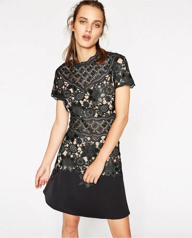 Ця сукня з короткими рукавами повністю виготовлена з вощеного мережива для жіночного стилю з рок-н-ролом. Її підкладка тілесного кольору грає з прозорістю, відкриваючи лише натяк на шкіру, а чудова тонка талія підкреслить вашу фігуру. У поєднанні з парою туфель-човників ця коротка сукня ідеально підійде як для вечірніх виходів, так і для більш офіційних заходів завдяки своєму позачасовому та елегантному кольору. Розмір вказано xxs , сяде до невеличкої s. Неймовірна сукня з мережива, бежева підкладка лише по низу спідниці, та на грудях. Спинка та талія, без підкладки, дуууже ефектно виглядає на тілі. Гарно підкреслює талію, низ легка трапеція. Довжина-89см Ширина під руками-45см Пот-35см Поб-48см Плечі-38см