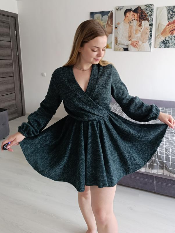 платье короткое женское. имеет 2 затяжки (но с тыльной стороны их не видно!) есть пояс с воланами из искусственного меха. на талии резинка (хорошо тянется) так что можно носить без пояса.