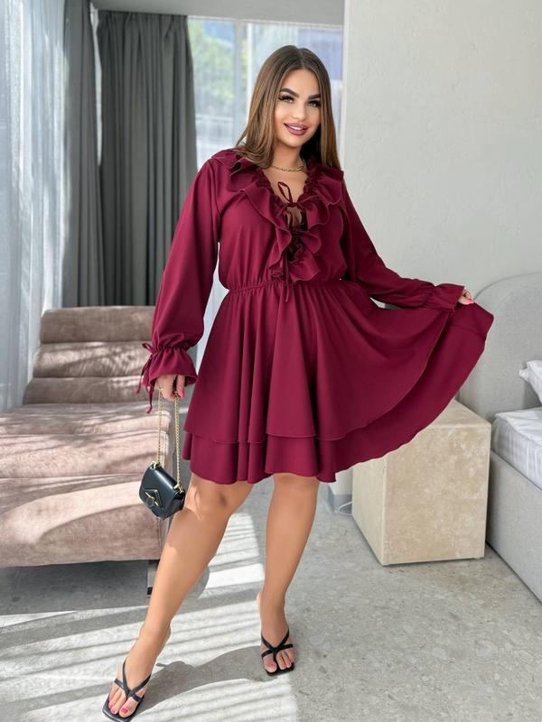 Яскрава новинка 💐 Код. 054 ( Стильна сукня з подвійною спідницею) Розміри: 48-50, 52-54, 56-58 Параметри сукні (по готовому виробу): ОГ/ОТ/ОС: 48-50: 100-110/72/130 52-54: 112-120/76/140 56-58: 122-130/80/150 Довжина сукні, довжина/ширина рукава: 48-50: 94; 70/48 52-54: 95; 72/52 56-58: 96; 74/56 Чотири кольори: - чорний - шоколад - бежевий - марсала Тканина: нижній гладкий та м'який софт. Не світиться. P.S.На моделях розмір сукні 48-50 Параметри моделей: 110-80-110/168 см 110-89-112/174 см 108-80-108/170 см