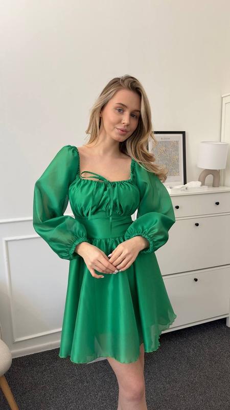 ❗️4 кольори ❗️жіноча сукня міні з органзи з завʼязками на грудях на спині корсетна шнурівк...