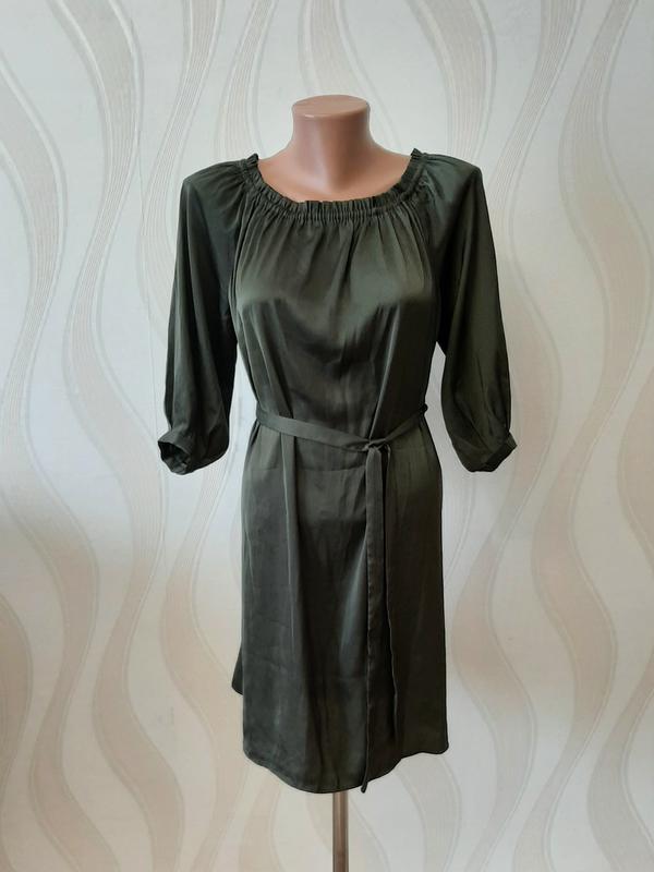 Сукня під пояс, рукав 3/4 реглан на манжеті. По горловина декорна резинка. Стан - нова. Плече 30см, ПОГ 51, ПОТ 52, ПОБ 57, довжина 80см, рукав реглан 44см від резинки.