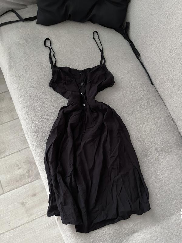 Сукня чорна Тканина віскоза легка Розмір ХС -с Збоку застібка Груди 40 Під груддю 36 Стегна 55 Довжина 85 можна регулювати бретелі Стан ідеальний