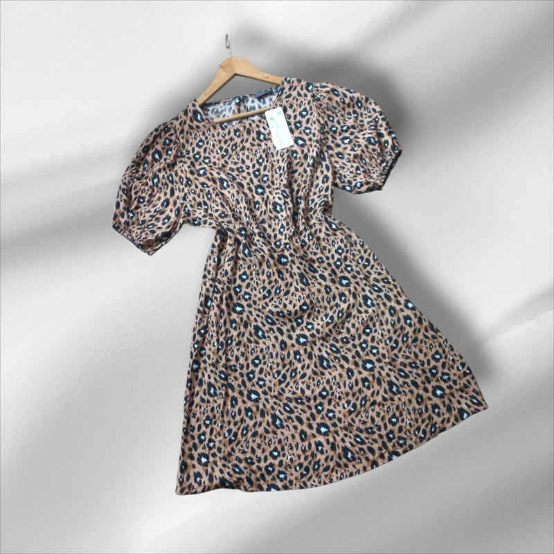 Платье с принтом леопарда.Ткань штапель легкая, приятная к телу. Фасон А-силуету,ззаду резинка,рукпв пишний на гумці. ПОГ-53 ПОТ-40/43 ПОБ-58 довж.-96 рукав-29 пройма рукава-28