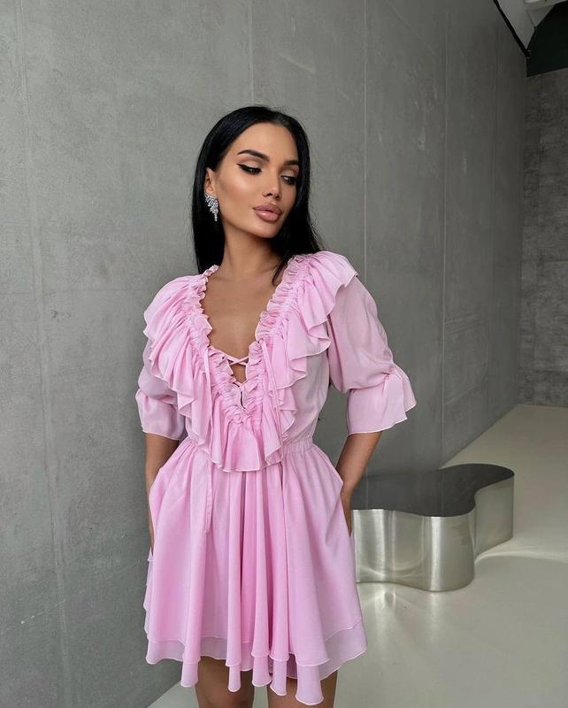 Ніжна повітряна сукня з пишною спідничкою 💗 Мод: 560 Тканина: креп шифон люкс Розмір: універсал 42-46 Кольори: білий, рожевий, блакитний Якість відмінна🔥 Точно як на фото. 💸Ціна: 880 грн Можна носити як з приспущеними плечиками, так і закритими. Не просвічує. Подвійна спідниця і волани створюють ефект легкості та невагомості.🍒