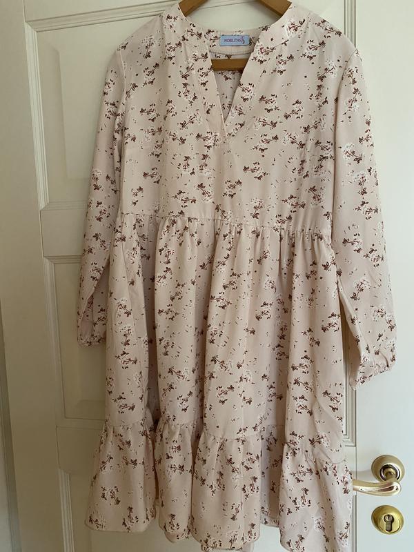 Продам сукню в гарному стані. Довжина: 89 см, пог- 46 см, пот - 42, ріка в - 52 см, поб - вільно. Колір бежевий з ніжним принтом в квітку.