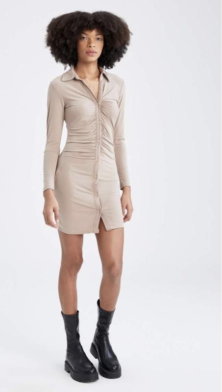 Классное платье Размер M ( на S тоже должно подойти) В мелкий рубчик, впереди на пуговицах Замеры: пог-44см, пот-36см, поб-45см, длина рукава-62см, длина по спинке -85см